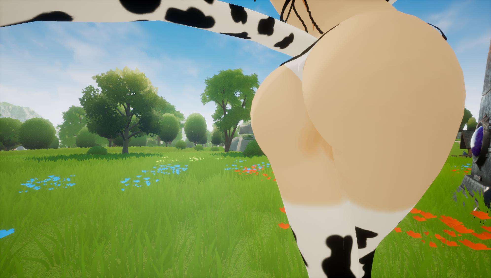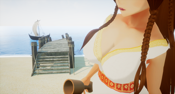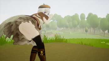 This is one of the only "free roam" open world type Hgame here! It's not bad, seems clunky. The bow and arrows for example do not function correctly, the arrows fly 2 cm to the right of the aiming dot.
